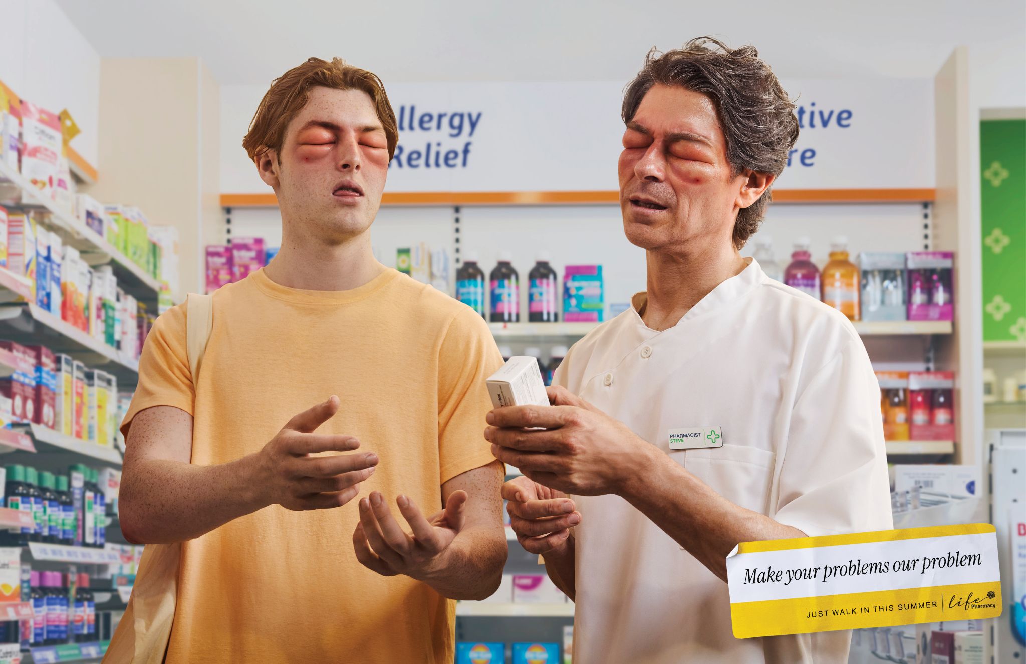La propuesta visual de Life Pharmacy presenta imágenes en las que el malestar del consumidor también se refleja en sus asesores, una forma literal de recordar que sus locales cuentan con personas empáticas, capacitadas y dispuestas a atender cualquier problema de salud.
