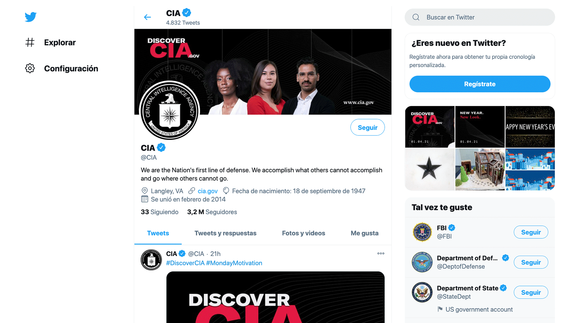 la Agencia Central de Inteligencia (CIA) de los Estados Unidos comenzó el año 2021 estrenando una nueva imagen institucional, encabezada por un nuevo logo que rompe con la tradicional imagen patriótica del águila, las barras y las estrellas, para aventurarse en un terreno que se asemeja más al imaginario cinematográfico que acompaña a la institución.