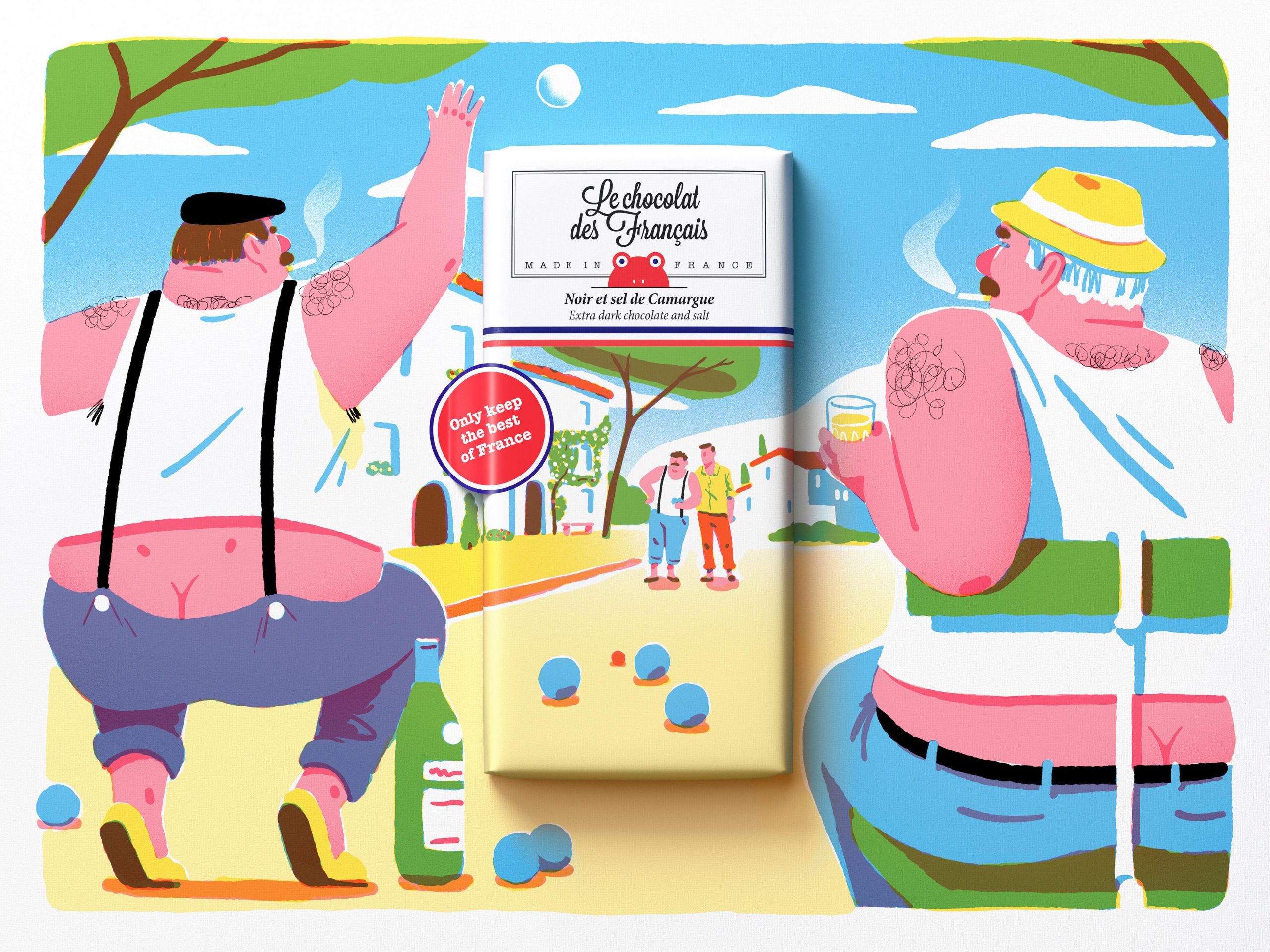 Con típicas escenas parisinas ilustradas, las nuevas barras de chocolate de esta casa reinterpretan los clichés relacionados con la Ciudad Luz, entre ellos, la fachada del Moulin Rouge, las cafeterías al aire libre, los embarcaderos de los petits bateaus a la orilla del Sena, los embotellamientos, el Acto del Triunfo lleno de manifestantes, la omnipresente Torre Eiffel o la elegancia a la francesa.