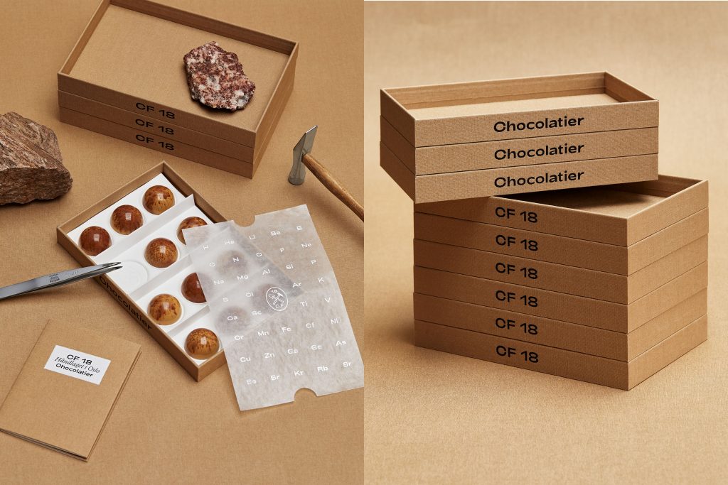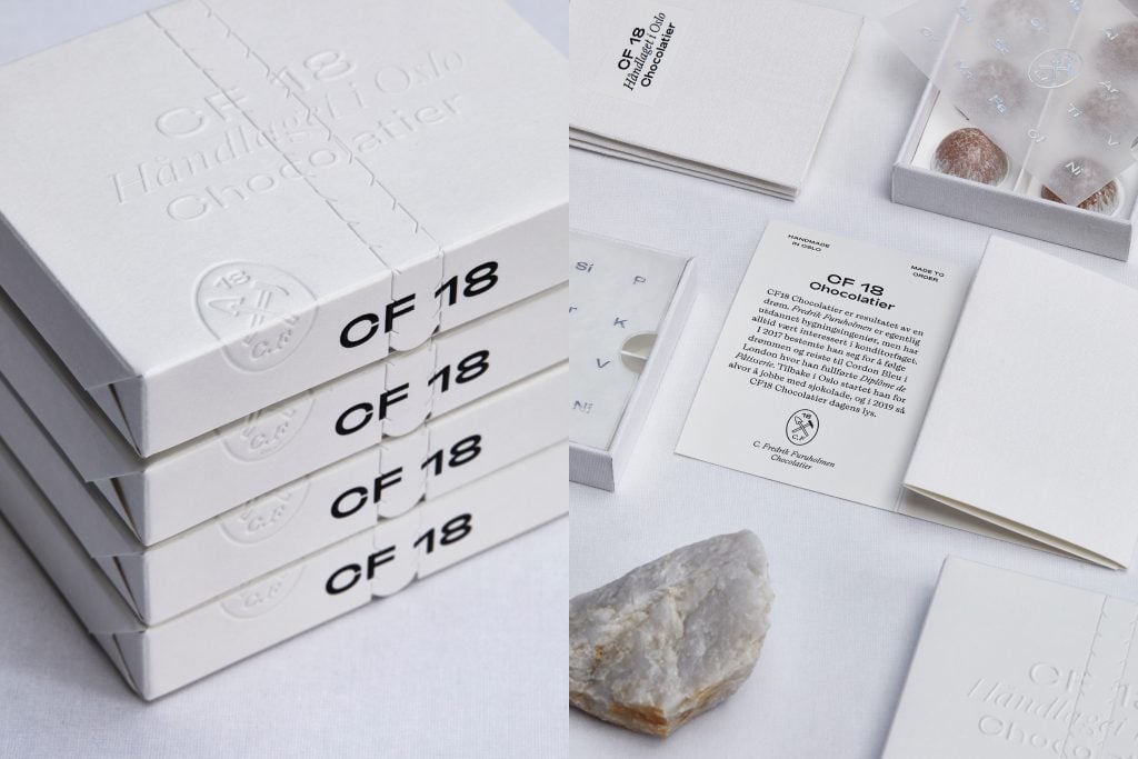 CF18 Chocolatier fue fundada por Christian Fredrik 2018. Fredrik solía trabajar como ingeniero civil, pero decidió cambiar de vida y convertirse en chocolatero. Para hacerle un homenaje a esa historia, decidió unir al chocolate con la ciencia a través del packaging.