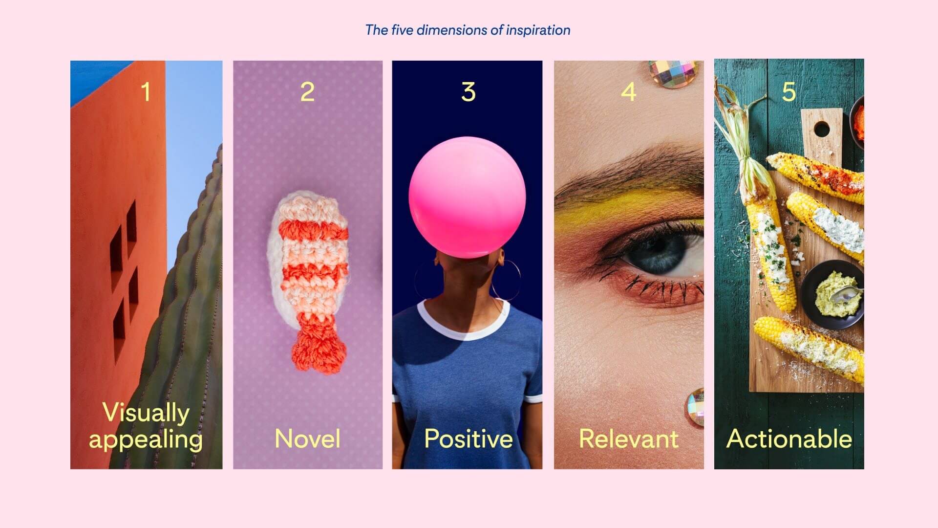 Esta nueva propuesta responde a un estudio llevado por Pinterest en su propia plataforma, donde identificó 5 aspectos claves al momento de llevar a cabo cualquier idea en la red social y estos fueron definidos como visualmente atractivos, novedoso, relevante, positivo y procesable.