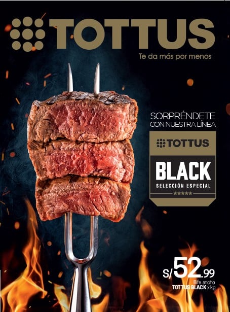 Esta estrategia presenta el relanzamiento de la línea de carnes Premium nacional bajo la marca Tottus Black. El objetivo de esta campaña es posicionar esta sección en el mercado nacional, a través de la calidad de sus productos, la variedad de carnes y la atención personalizada que ofrecen.