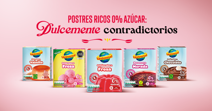 Bajo esa idea, Universal busca diferenciar su portafolio 0% azúcar —que incluye versiones clásicas, endulzadas con stevia y variedades especializadas con extra colágeno y extra fibra— y reforzar la identificación de cada producto en el punto de venta.