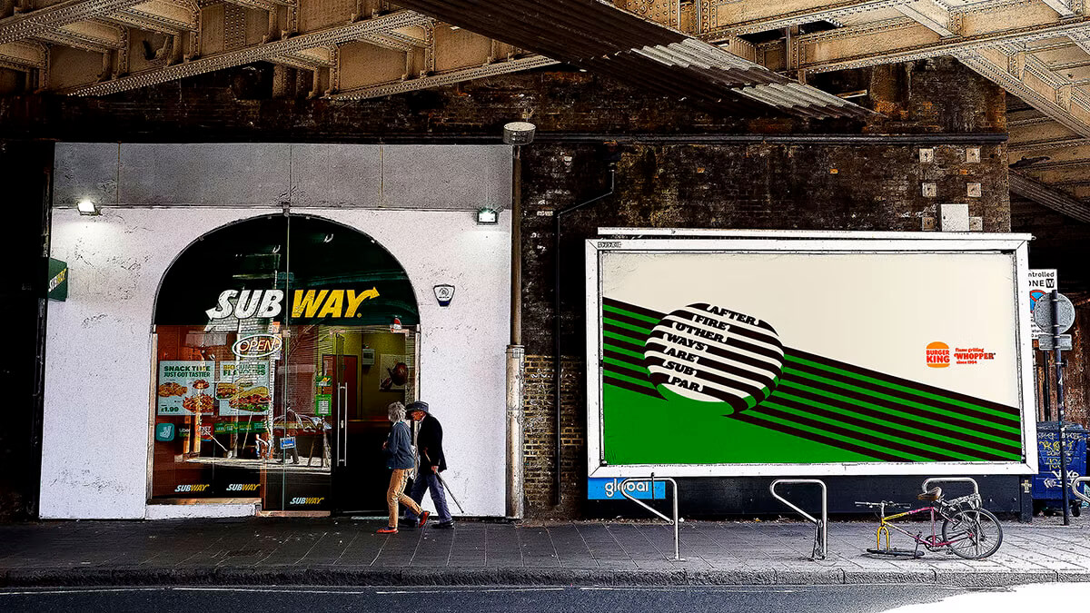 La particularidad y singularidad de los anuncios radica en una seria de eslóganes adjuntos, entretejidos en las rayas de la parrilla de las hamburguesas. Estas se burlan directamente de los competidores de comida rápida de Burger King, con anuncios al aire libre ubicados estratégicamente cerca de Subway, KFC y McDonald’s.