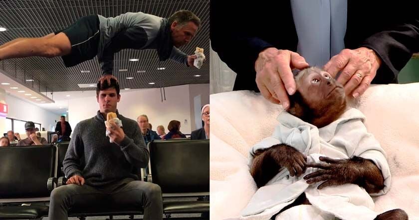 En otro de los videos podemos observar cómo un hombre hace equilibrio con una mano posada en la cabeza de otro.