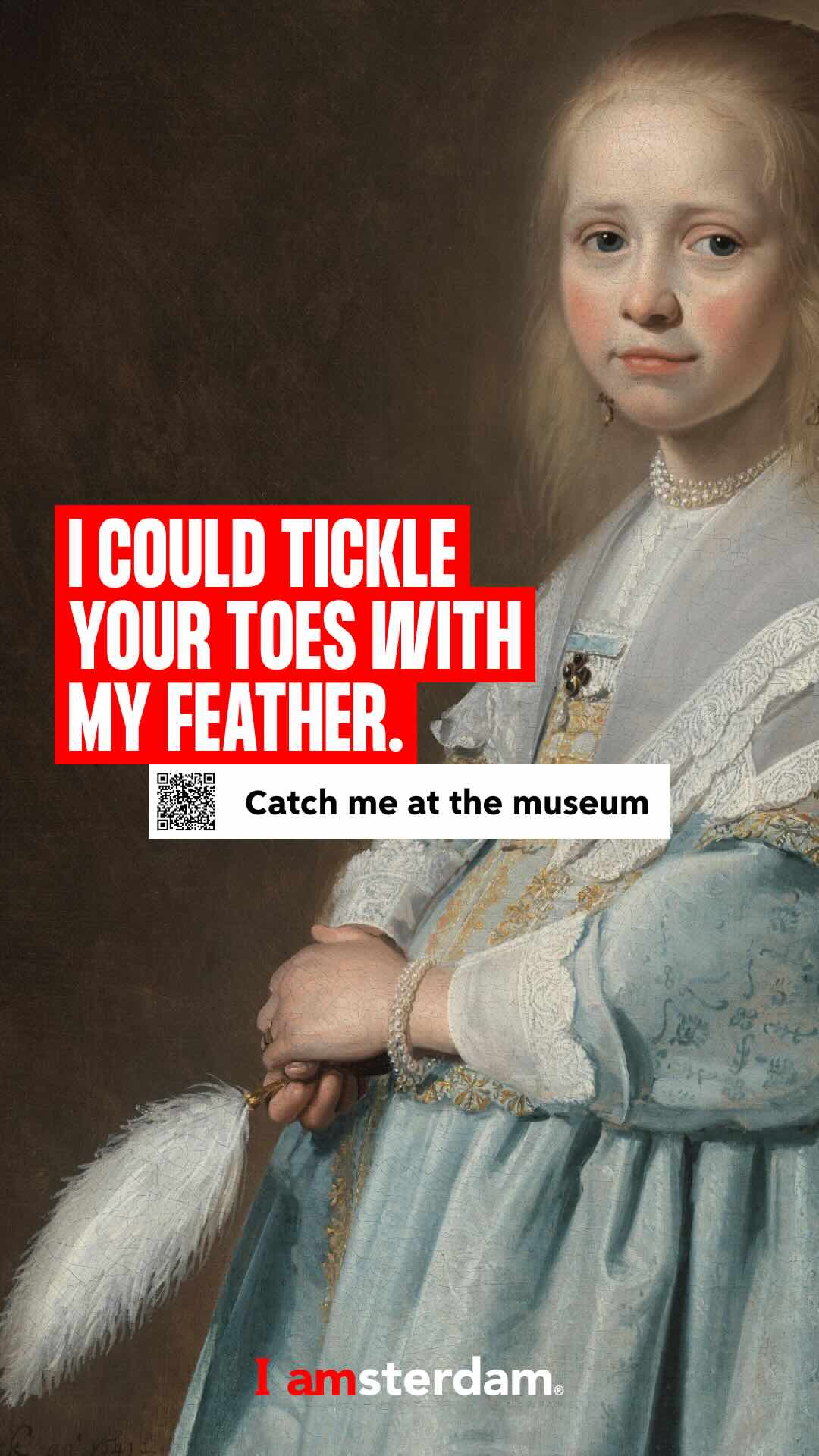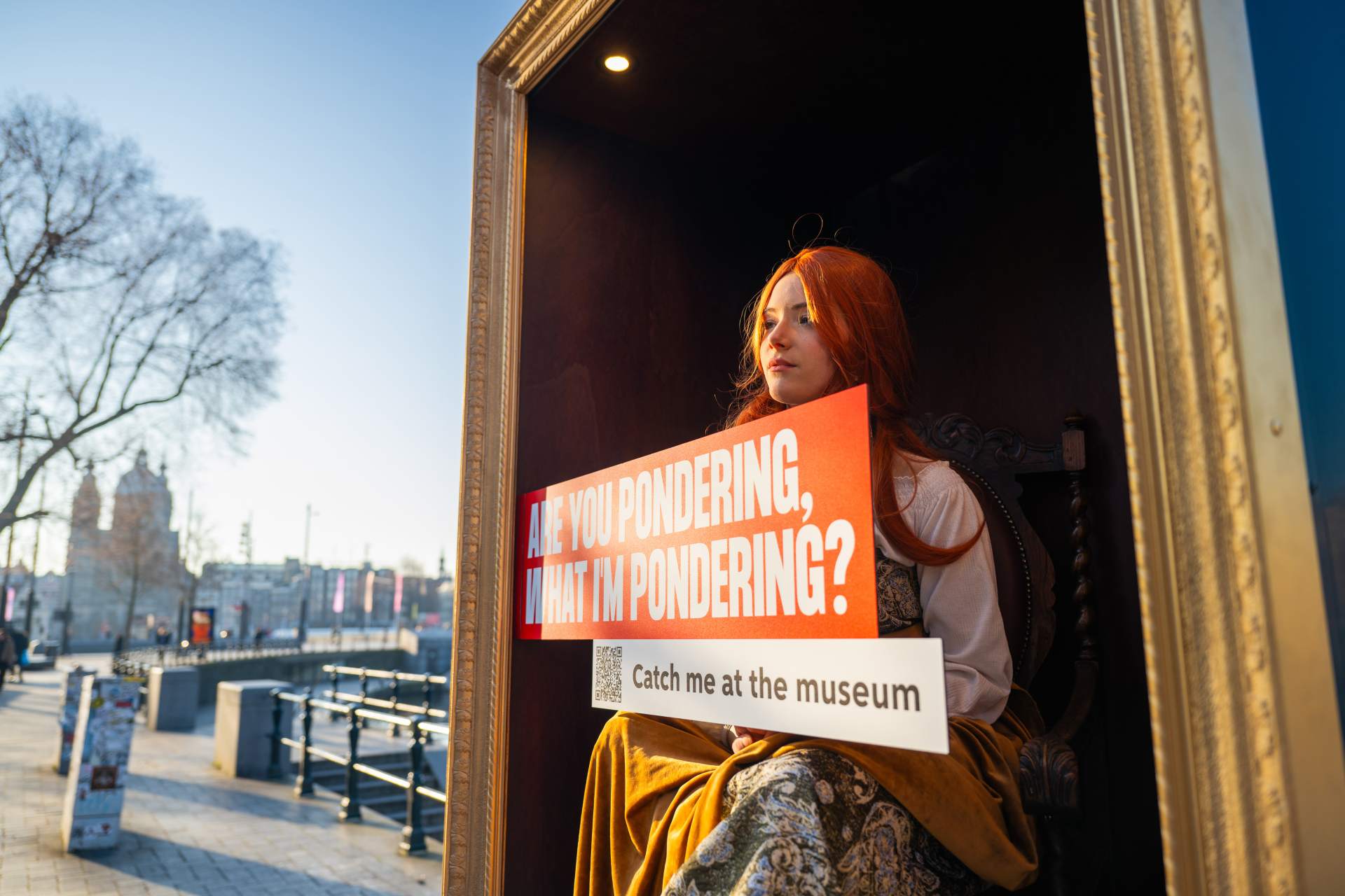 La campaña “Catch me at the museum” apuesta por sacar a las calles una reinterpretación de las obras de arte de los principales museos de Ámsterdam a fin de impulsar la oferta cultural como atractivo turístico. Además, cuenta con dos estatuas vivientes que interactúan con los transeúntes.