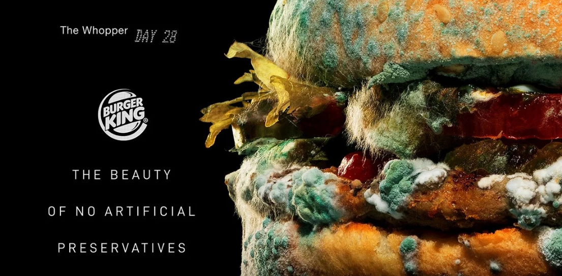 En el anuncio dado vía Twitter se muestra un video, en el que una Whopper es elaborada a la perfección, pero de pronto es abandonada para ver cómo día tras día se va descomponiendo hasta quedar llena de moho y sin color. La acción sin precedentes, elaborada por las agencias de publicidad INGO, David Miami y Publicis, maneja un concepto claro y directo: lo natural se acaba o en este caso… se descompone.