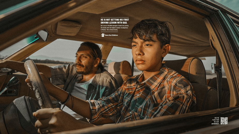 «Inspirándonos en las situaciones cotidianas de las familias tradicionales, como jugar fútbol, aprender a conducir o mirar televisión, quisimos mostrar cómo se han vuelto cotidianas las familias del crimen organizado que reclutan y explotan a niños», dijo Alexis Ospina, director creativo de México Gris. .