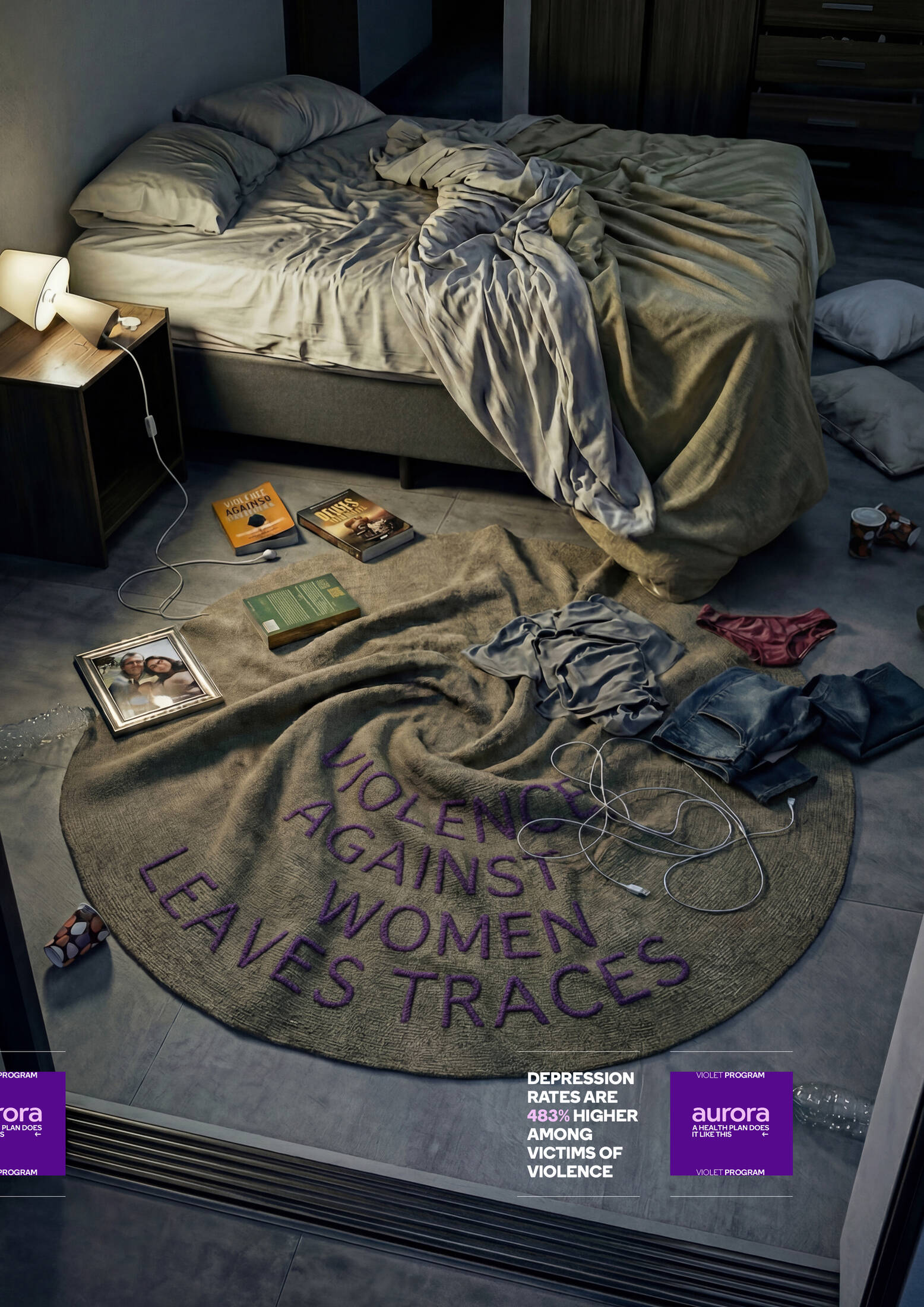 A través de 3 piezas que describen escenarios crudos de hogares donde una mujer fue víctima, la marca le dice al espectador que la violencia de género deja huellas. Asimismo, cada gráfica está reforzada por un dato revelador y preocupante: las mujeres víctimas de agresión tienen tasas de