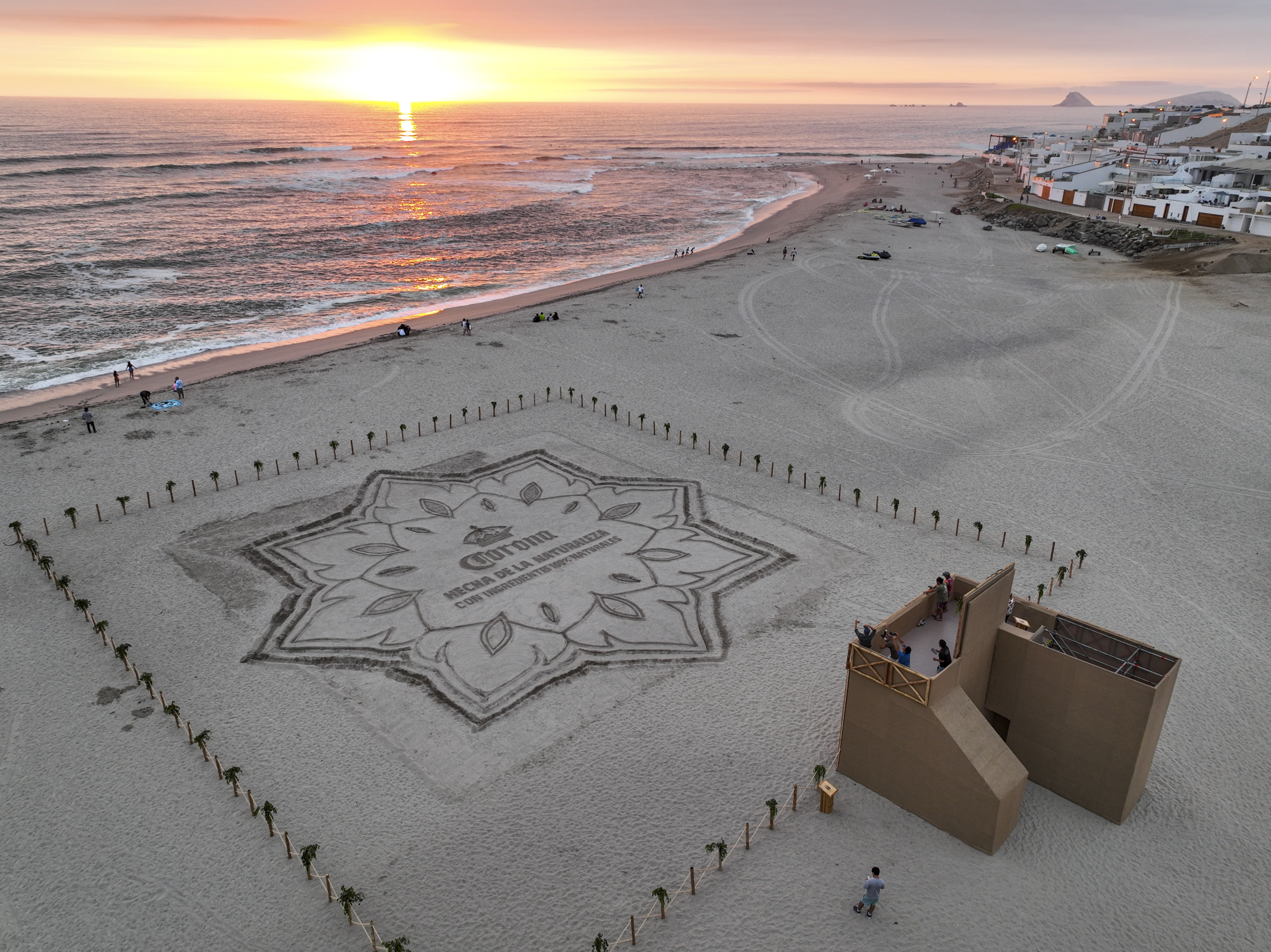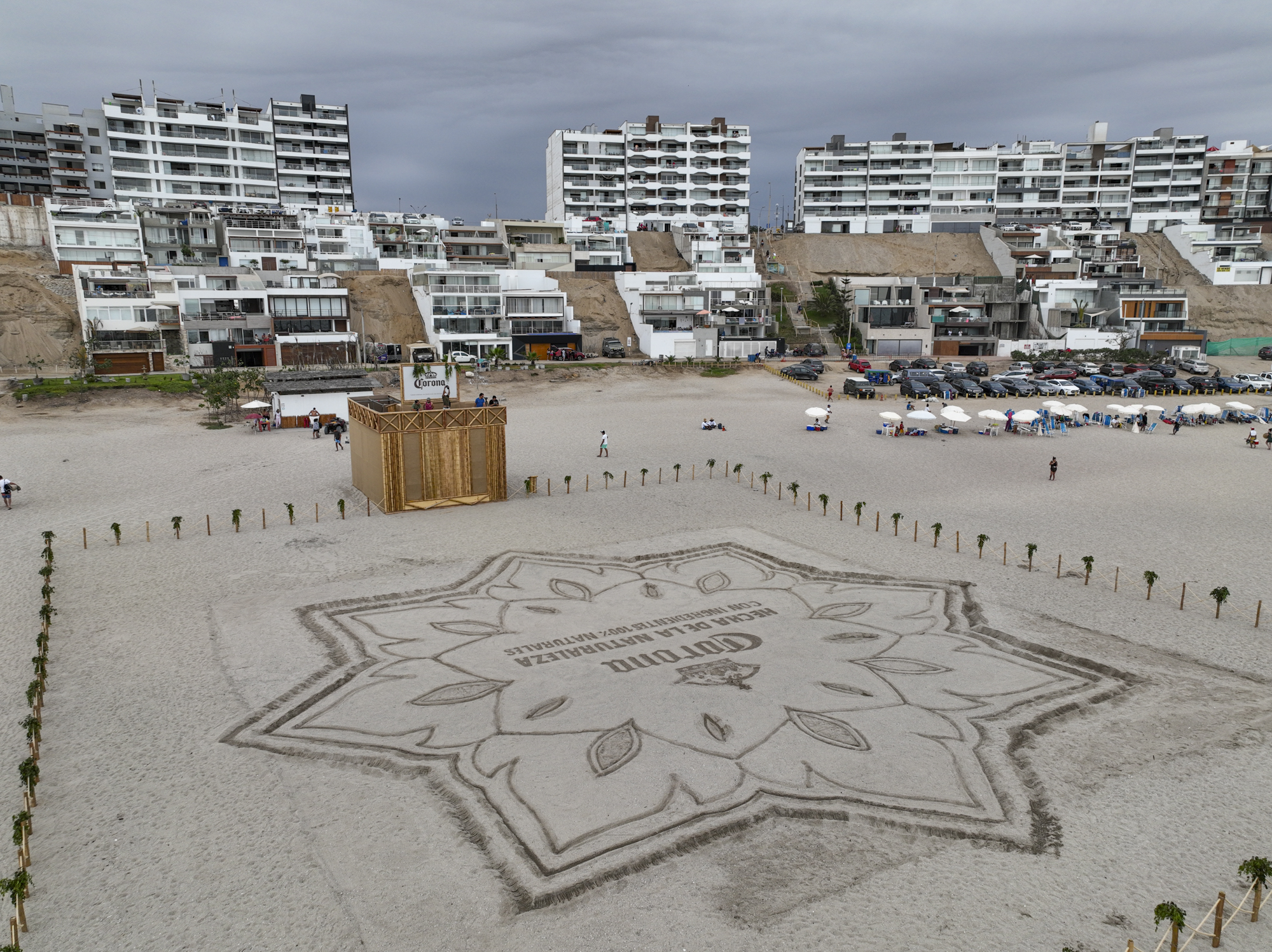 ‘Corona Natural‘ o ‘Natural Billboard’ de Cerveza Corona se desarrolló en la playa Caballeros, en Punta Hermosa, donde artistas locales intervinieron la arena de este lugar para dar vida a una pieza artística que representaba el sol que resplandece en esta estación. Los veraneantes pudieron apreciar el arte en todo su esplendor desde una torre de cuatro metros de altura, acondicionada especialmente para la ocasión.