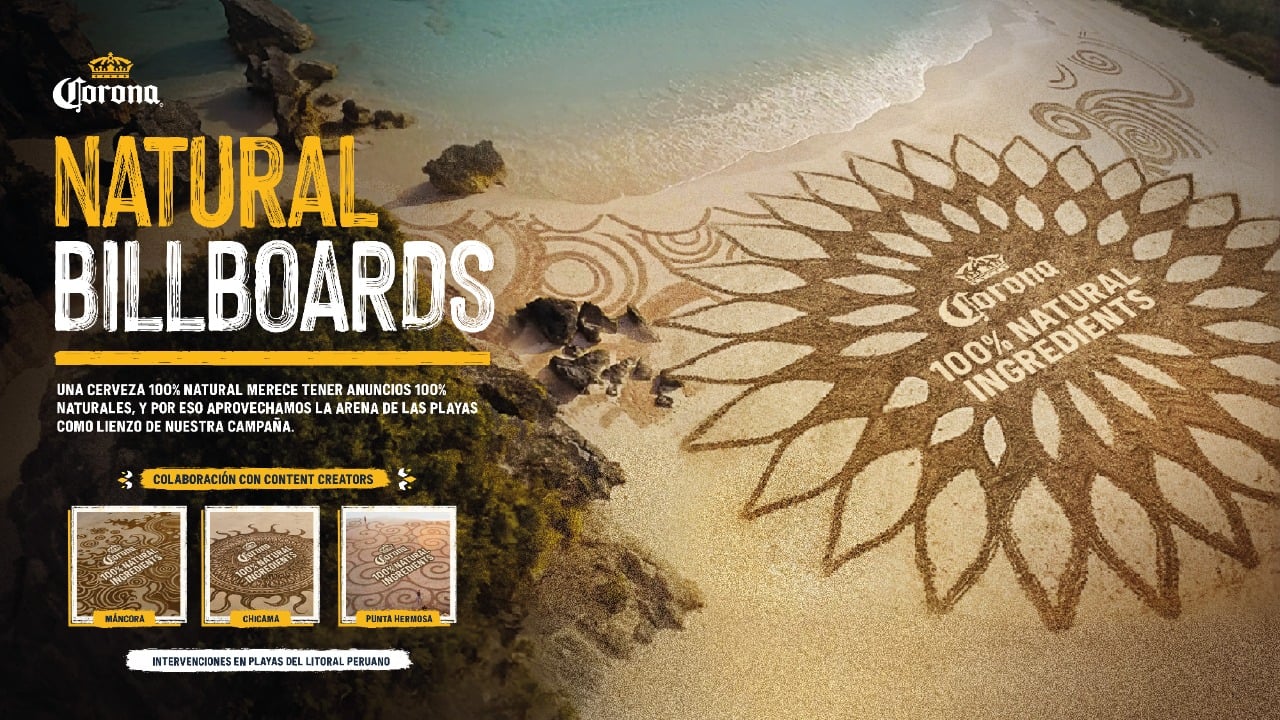 “Corona es una cerveza cuyo origen está en la naturaleza, ya que los ingredientes que se usan para su elaboración son 100% naturales. Con ‘Natural Billboards’ buscamos revalorar nuestros paraísos que se encuentran en todo el país desarrollando estos paneles publicitarios que son totalmente orgánicos, convirtiendo estos puntos no solo en una comunicación de la marca, sino también en un atractivo para las personas”, destacó Diego Devoto, director de Premium Brands en Backus Ab-Inbev.