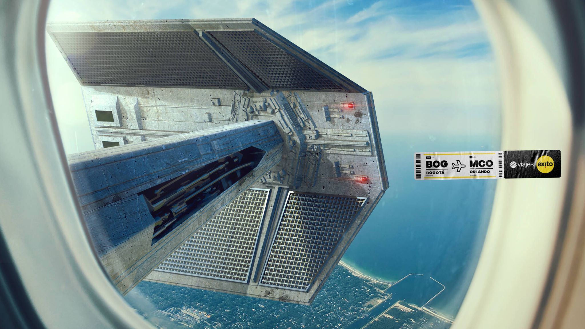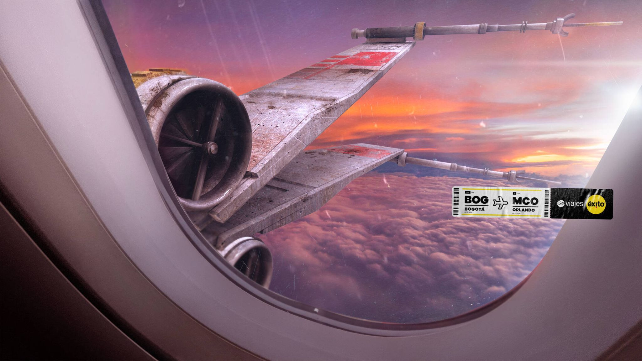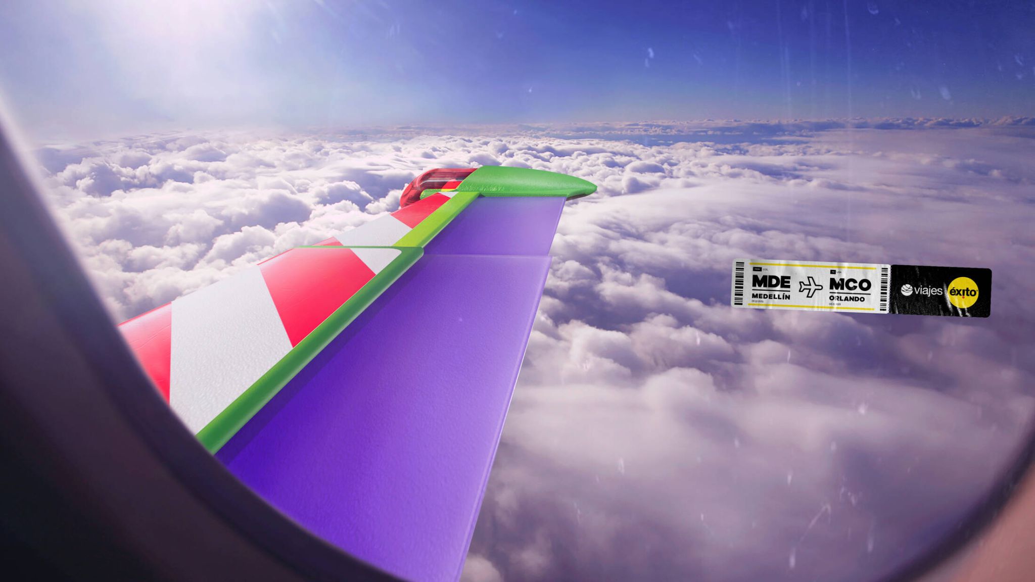 Creada por Sancho BBDO para Viajes Éxito, la propuesta propone que el primer viaje hacia Orlando comienza con el vuelo, no con la fila de la atracción. Las alas del avión se mezclan con las alas icónicas de los personajes y universos de los parques, para reflejar expectativas, sueños y magia.