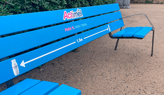 La pandemia ha obligado a tomar medidas extremas para prevenir los contagios y, por ende, la propagación del COVID-19. En ese sentido, Actimel, marca que comercializa productos lácteos y probióticos, ha encontrado una forma de educar sobre la importancia de mantener la distancia como medida para luchar contra el nuevo coronavirus. Se trata de unos bancos que no tienen asiento central, lo que obliga a las personas que se sienten en él y respetar los 1.5 metros de distancia para evitar contagiarse.