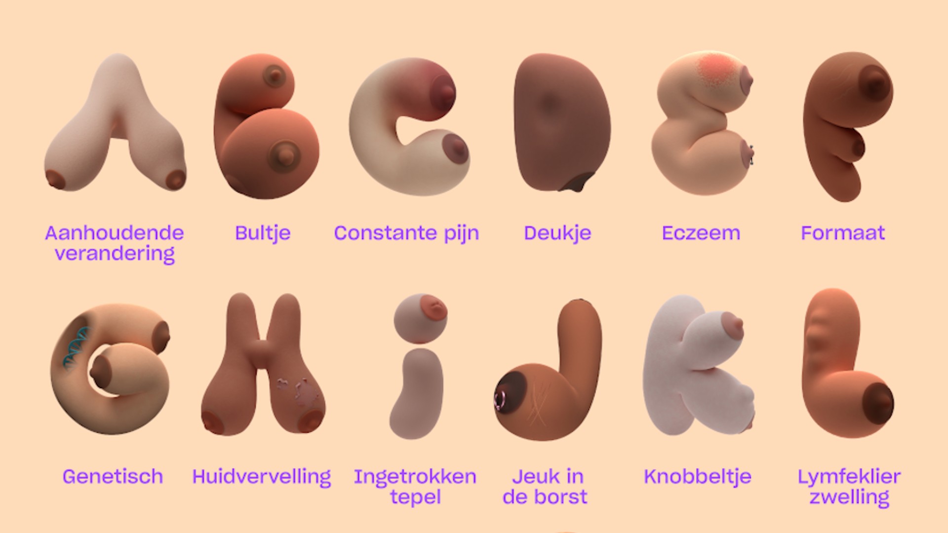 Con el objetivo de crear conciencia y educar a la población más joven sobre cuáles son los síntomas del cáncer de mama, la agencia TBWA Neboko ha lanzado la campaña “El alfabeto del cáncer de mama” en los Países Bajos.