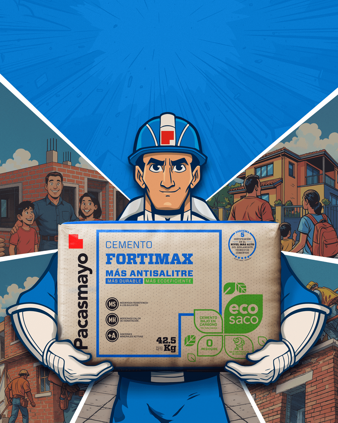 Bajo este enfoque, Cementos Pacasmayo innova dentro del sector construcción con el lanzamiento de “Fortimax, el Súper Azul”, un videojuego que refuerza su mensaje de construcción responsable y duradera. La experiencia es protagonizada por Súper Azul, personaje icónico del cemento Fortimax, y está pensada para maestros de obra, autoconstructores y familias del norte del Perú.