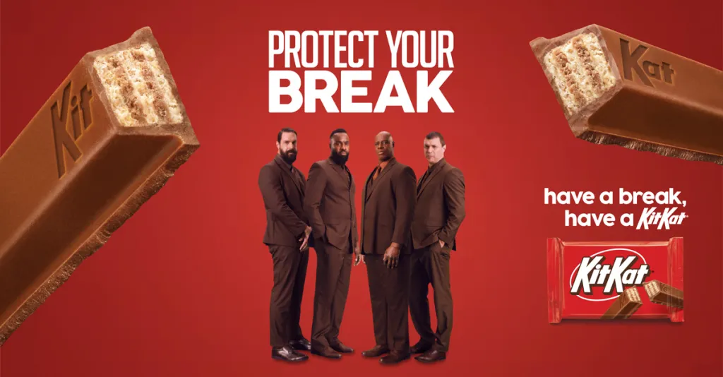 La conocida marca de chocolates Kit Kat, ha lanzado una singular campaña que se vale de su característico eslogan «Tómate un descanso, tómate un Kit Kat», para otorgarle una nueva función. Esta busca recordar cuan importante son los descansos, por medio de 4 personajes trajeados: los Break Brothers.