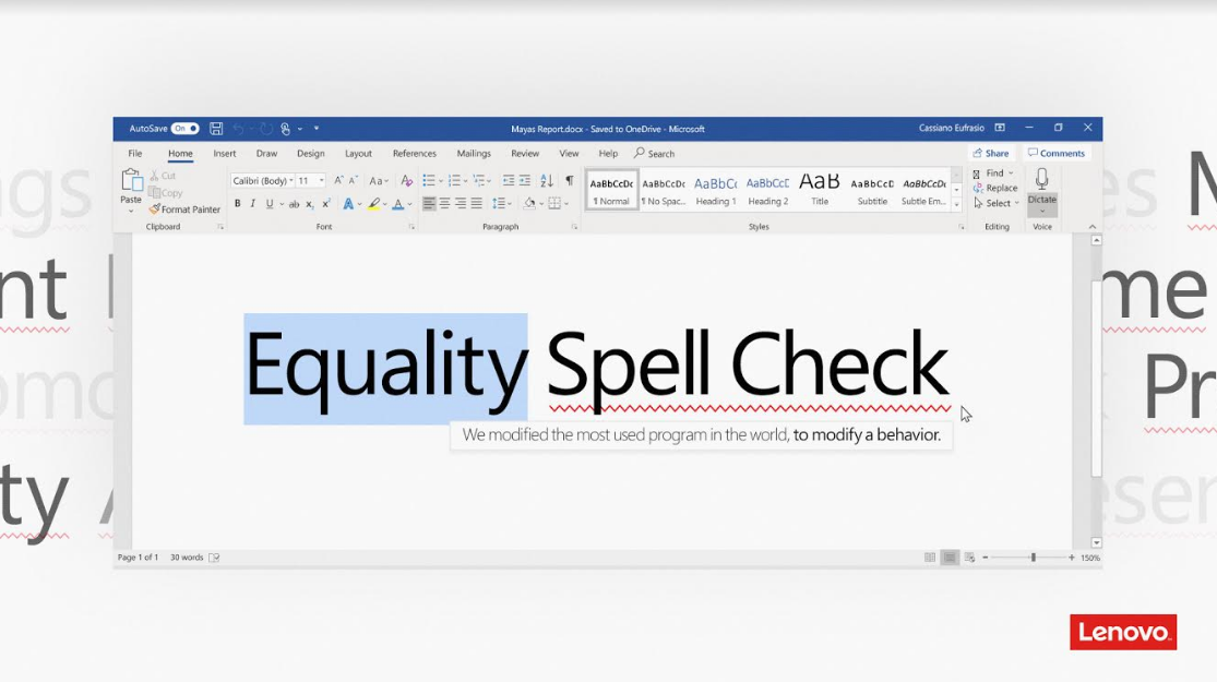 A partir de este hallazgo Wunderman creó “Equality Spell Check”. Una campaña que usa como base Microsoft Word, uno de los programas más usados alrededor del mundo. Este se volvió en el medio idóneo para hacer llegar un mensaje educativo sobre la igualdad de género en el ambiente de trabajo de forma innovadora.