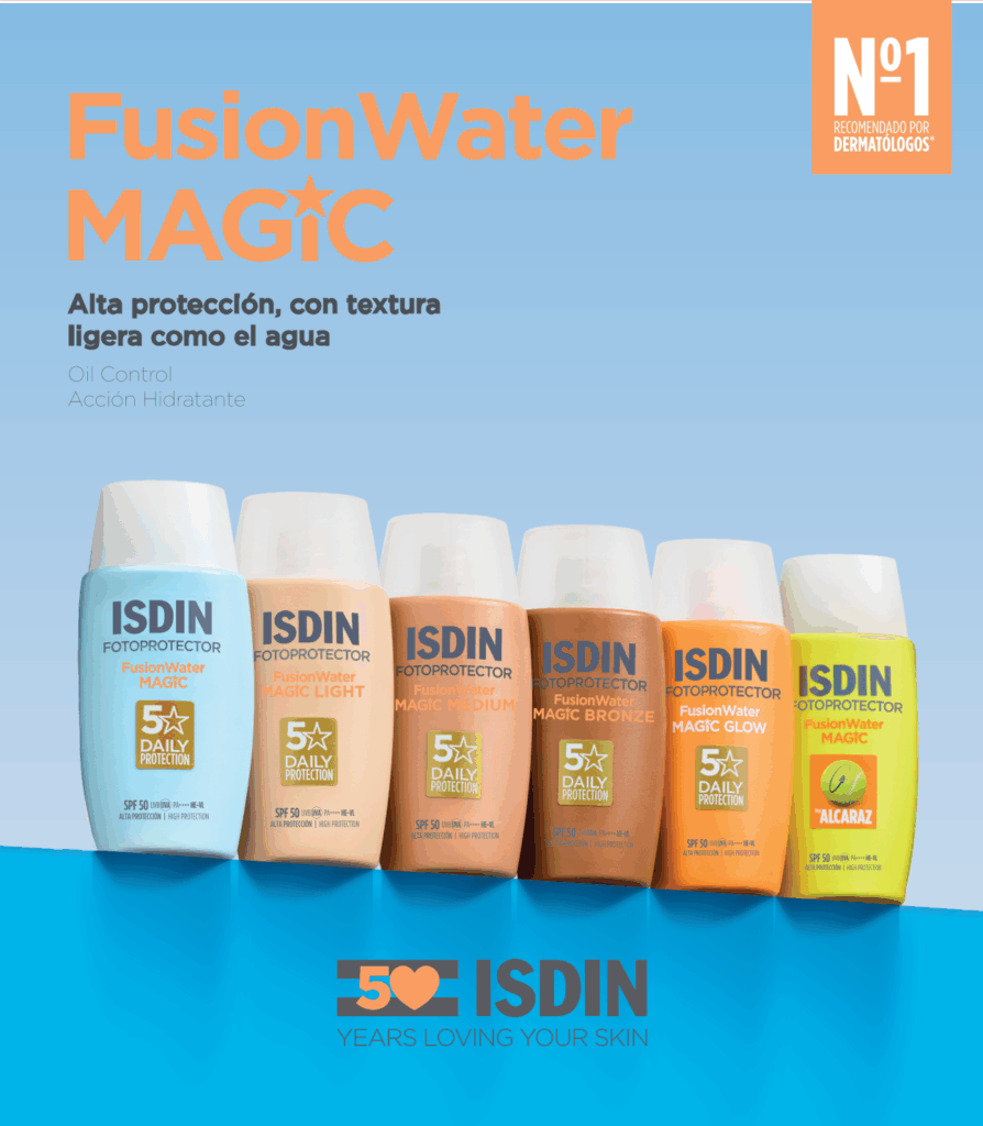 La línea Fusion Water Magic es la más sólida de ISDIN y uno de sus principales best sellers. Su propuesta se basa en ofrecer un fotoprotector Oil Control para cada ocasión, manteniendo una textura ultraligera, de rápida absorción y pensada para el uso diario.