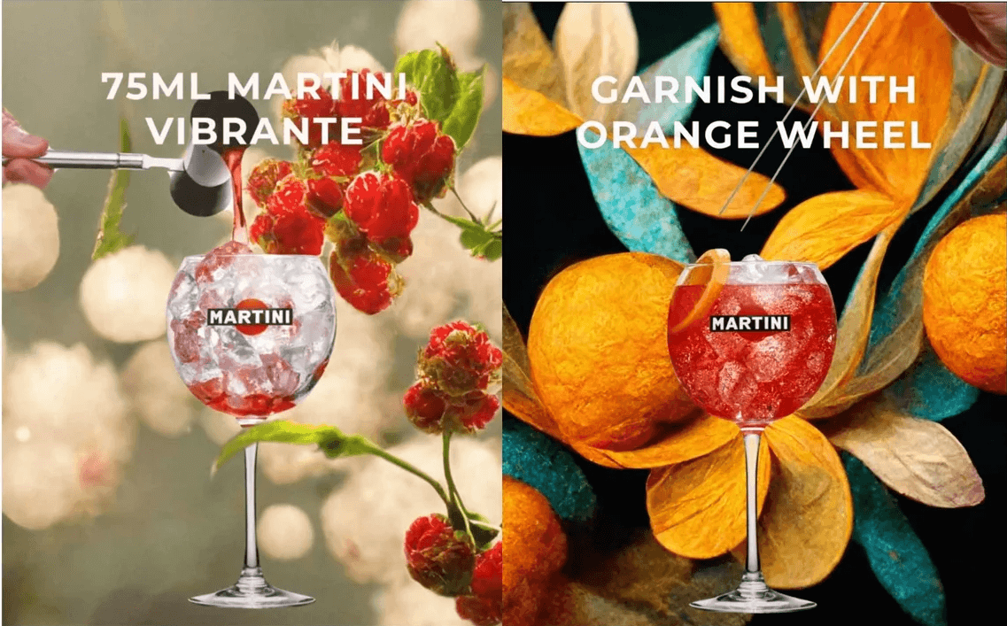 Se usaron palabras clave como: botánicos, floral, pétalos, flores, Artemisia y manzanilla romana se introdujeron en Midjourney. Así se generaron las imágenes de nueve cócteles diferentes elaborados con Martini, incluido el Martini Non Alcoholic Vibrante & Tonic, el Martini Americano y el cóctel del momento, el Negroni Sbagliato. Los resultados de la inteligencia artificial se emplearán en plataformas sociales y digitales en mercados de todo el mundo para llevar a cabo la campaña publicitaria.