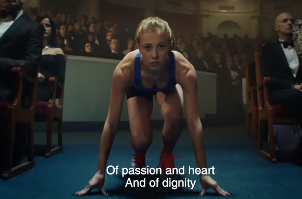 En el primer spot se visualiza a una niña cantando opera en un teatro lleno de personas, mientras que se hace la pregunta ¿De qué están hechas las mujeres? Por consiguiente, reconocidas atletas de todo el mundo se levantan de sus sillas y la pregunta continúa con la misma: están hechas de lo que hacen.