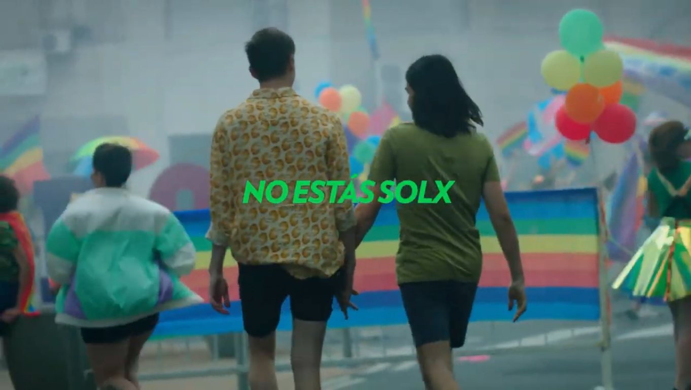 El comercial termina con la frase: “Orgullo, lo que sentís cuando alguien que querés elige ser feliz”, después aparece el lema: “No estás solx”.