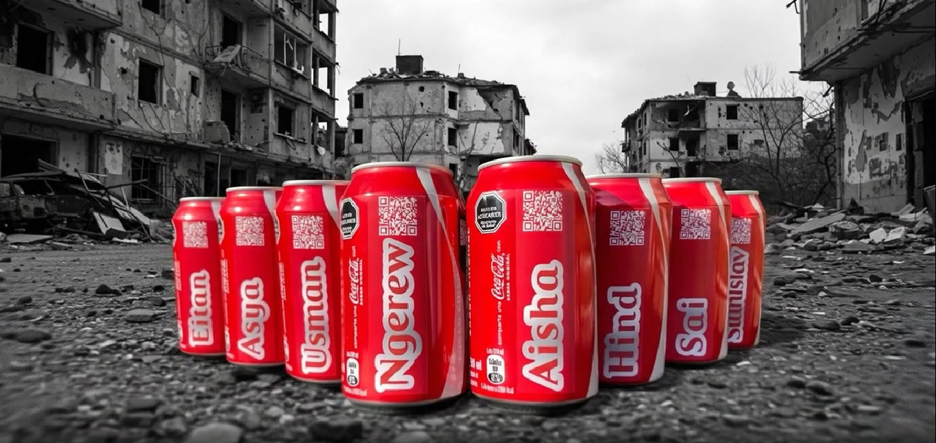 Un creativo chileno decidió transformar la popular campaña publicitaria de Coca Cola, llamada “Share a Coke” (“Comparte una Coca-Cola»), en una plataforma para visibilizar una lamentable realidad: los cientos de niños que pierden la vida producto de los conflictos bélicos.