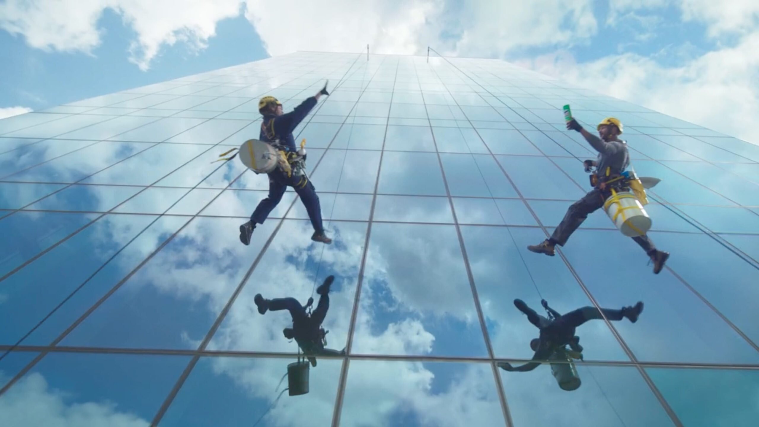 El spot en formato cinematográfico, dirigido por el colectivo Traktor, tres veces ganador del Gran Premio de Cannes, sigue a dos acróbatas limpiadores de ventanas que hacen todo lo posible para pasar un tubo de Pringles suspendidos a media altura de un rascacielos. Mientras se balancean por el edificio, los oficinistas los observan con sorpresa, mientras la icónica canción de los 80, St. Elmo’s Fire (Man in Motion), de John Parr, anima la acción.