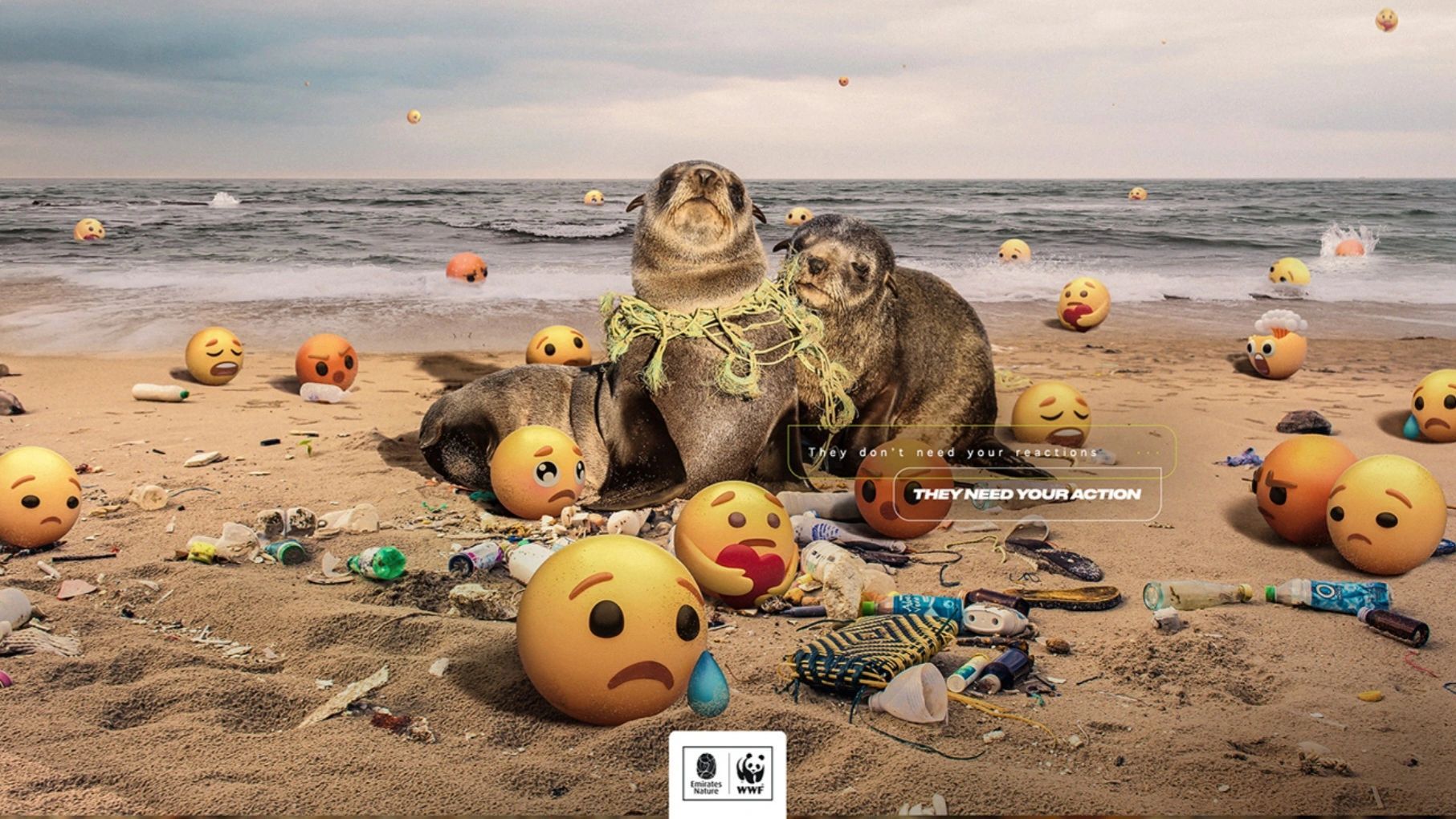 En ese sentido, la organización ha creado una serie de piezas en las que animales de distintos tipos se muestran en espacios naturales contaminados. Sin embargo, la peculiaridad no solo está en cómo se muestran los seres vivos o la basura que los rodea, sino en la presencia de gran cantidad de emojis.