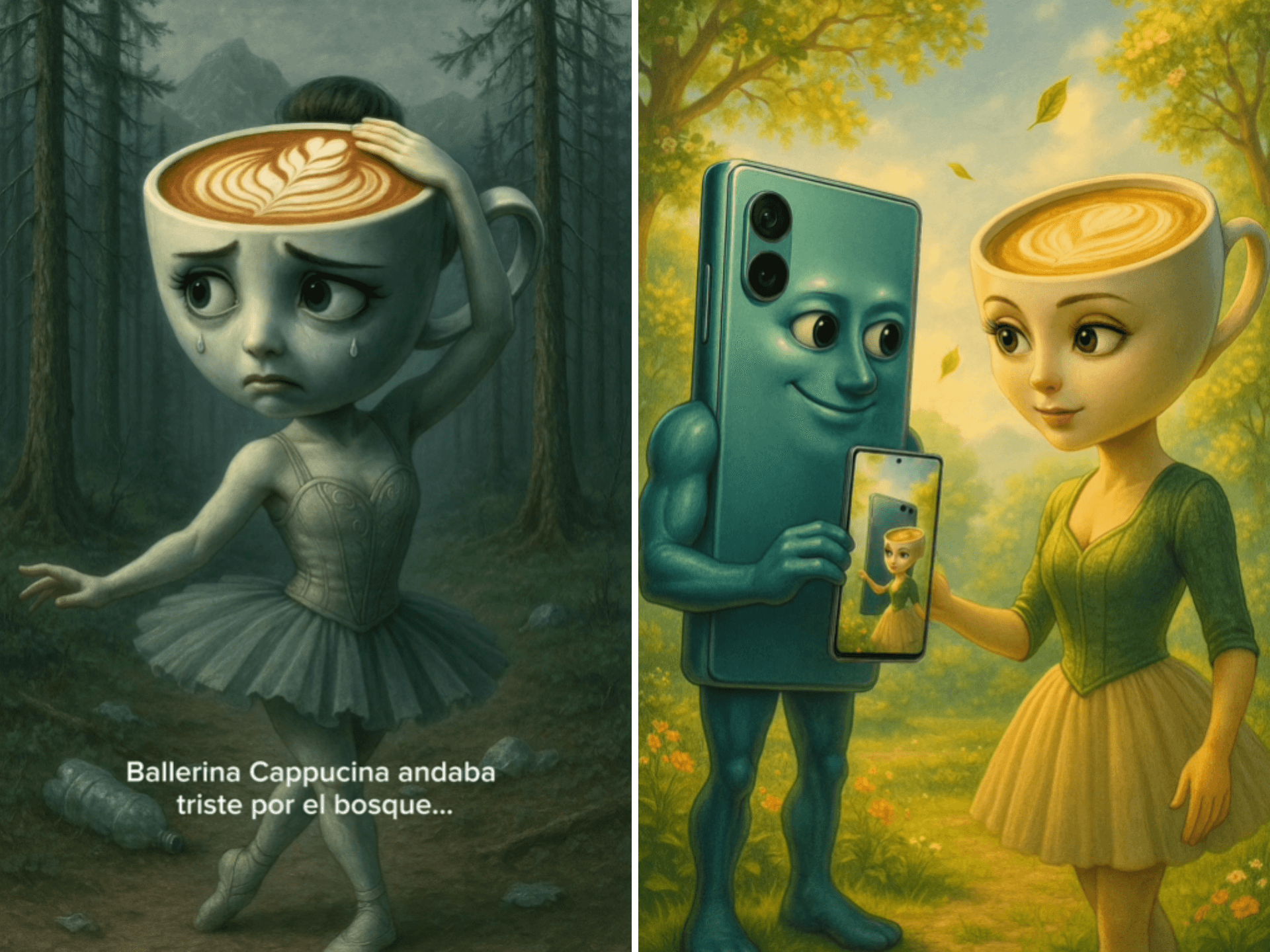 Respecto al contenido de este, cuenta la historia de ‘Ballerina Cappuccina’ (personaje ficticio del trend), quien se muestra triste porque en el día de su cumpleaños, que coincidentemente era el mismo del Día de la Tierra, había basura y contaminación por todas partes.