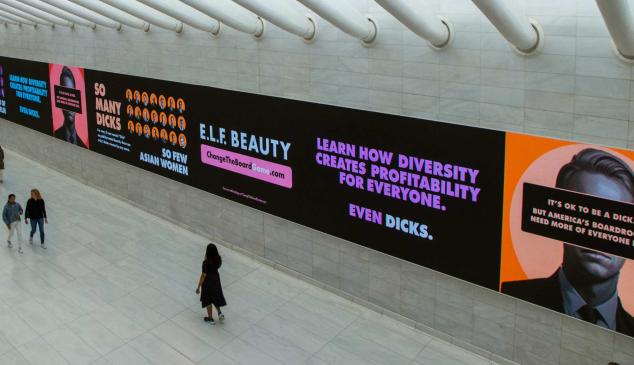 “So Many Dicks”, la campaña con un nombre irónico de elf. Beauty descubre esta inquietante verdad para destacar la necesidad de una mayor diversidad en los puestos de poder. La acción creativa comenzó en mayo y se extiende hasta el 10 de junio, cuando los anuncios exteriores de la marca de belleza aparecerán en todo el distrito financiero de Nueva York, hogar de importantes instituciones financieras y muchas otras empresas que luchan contra este mismo problema.