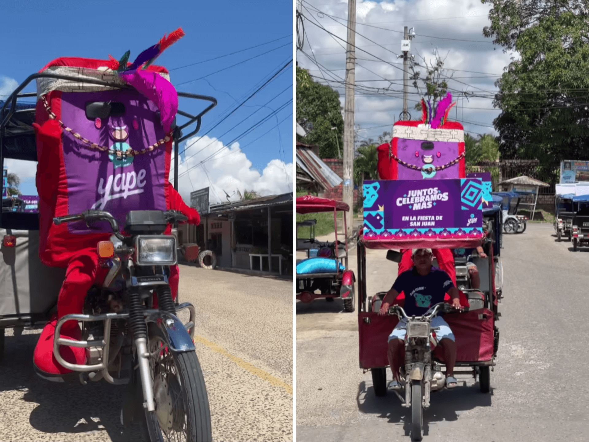 De acuerdo a un video compartido por Yape en redes, circularon un grupo de mototaxis y “peque-peques” (embarcaciones fluviales), que incluían una serie de anuncios en la parte superior delantera. Estos incluían frases bastante peculiares con términos característicos de la selva.