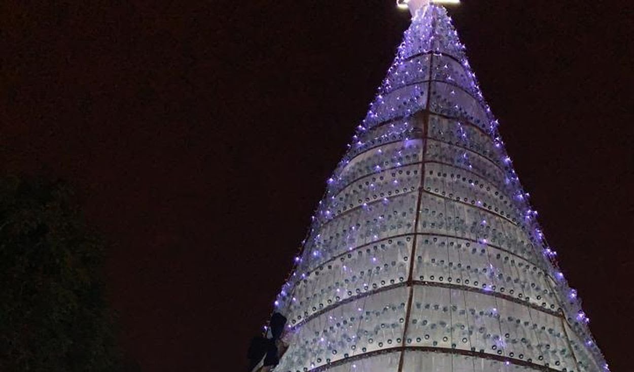 Coca Cola Perú, la municipalidad de San Isidro y la ONG Recicla,Pe! encendieron por segundo año consecutivo un árbol hecho 100% de botellas reciclables