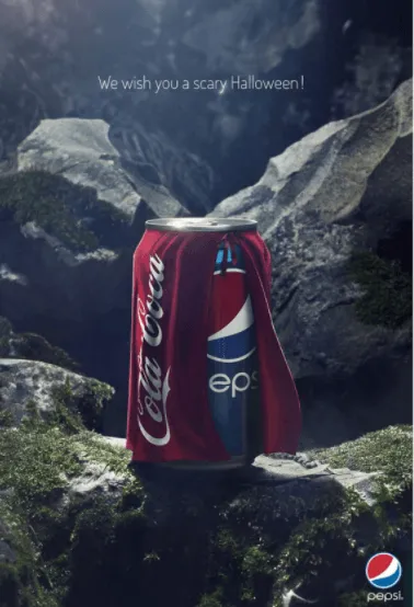 Sin embargo, la respuesta de Coca-Cola no se hizo esperar. En lugar de entrar en una confrontación directa, la marca optó por un enfoque ingenioso y creativo. Cambió el significado del anuncio de Pepsi, haciendo que pareciera que la marca intentaba ponerse una capa roja en Halloween para convertirse en un «héroe», al estilo de Coca-Cola.