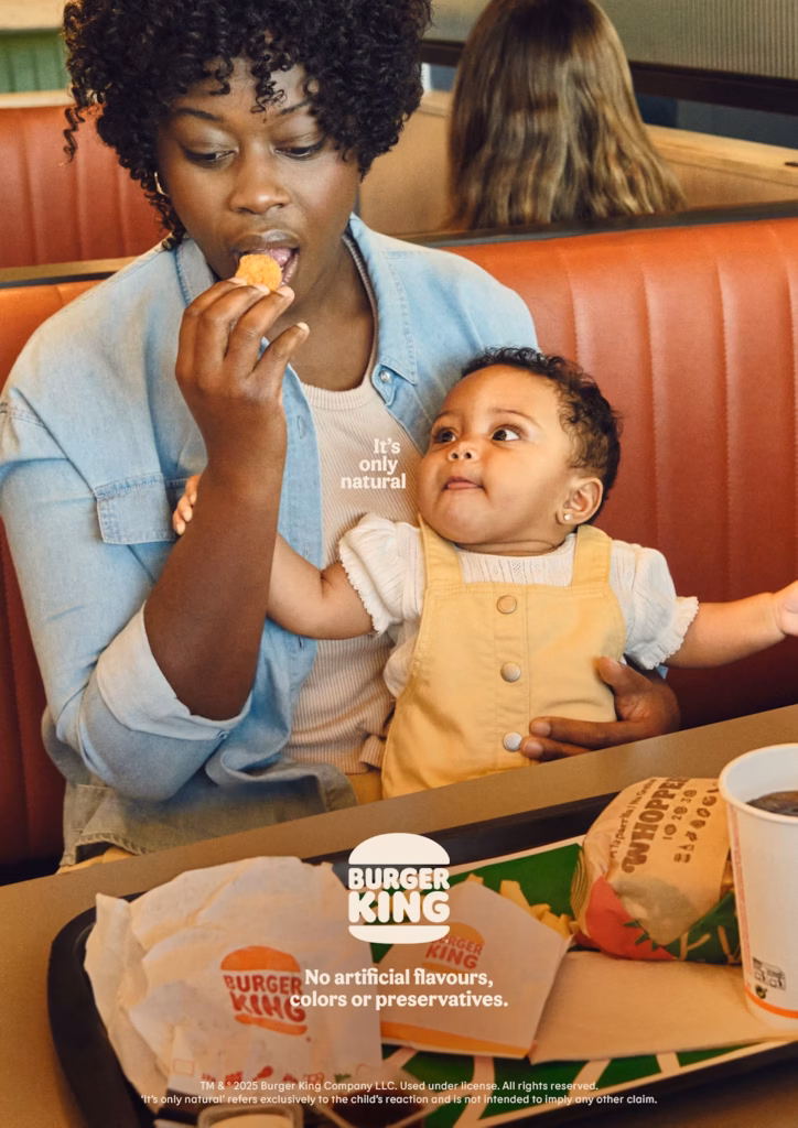 Burger King presentó “It’s Only Natural”, una campaña global que celebra lo auténtico desde las emociones más simples. La pieza reúne videos caseros grabados con smartphones, donde se observa a bebés y niños pequeños reaccionando al ver a sus padres disfrutar un Whopper. No hay guión ni actuación, solo gestos espontáneos de asombro y ternura mientras intentan alcanzar el icónico sándwich.