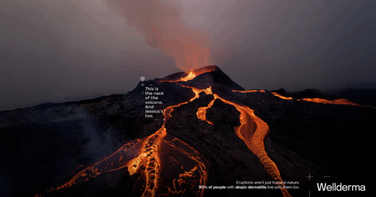 Con imágenes espectaculares, que muestran la erupción de un volcán o el cañón de un río, la campaña de Wellderma busca representar la realidad de quienes padecen esta afección de la piel.