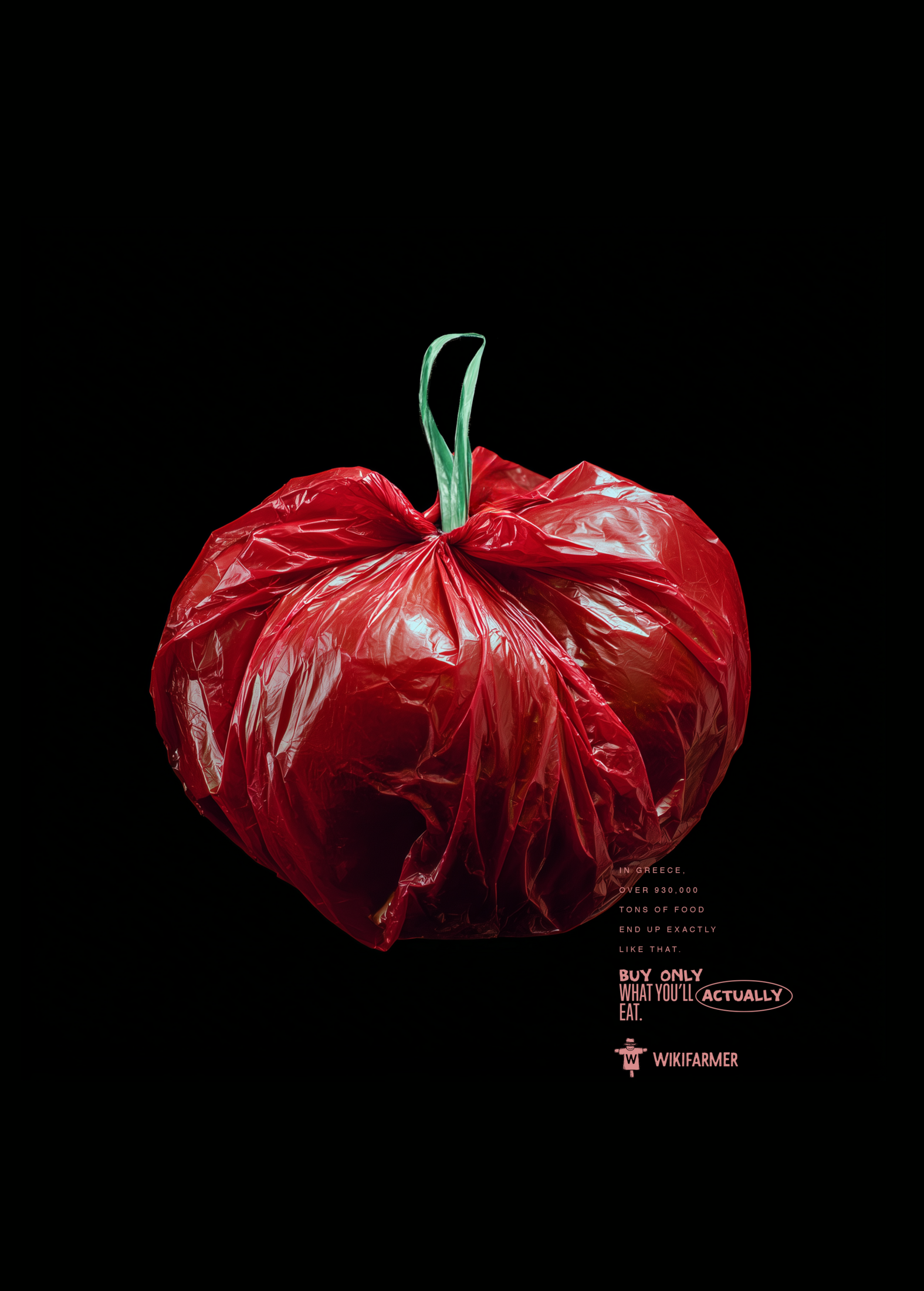 Cada año, más de 930 mil toneladas de comida terminan en bolsas de basura en Grecia. Sin embargo, 673 millones de personas a nivel mundial no tienen la suficiente para alimentarse, por lo que Wikifarmer ha ideado esta campaña concientizadora.