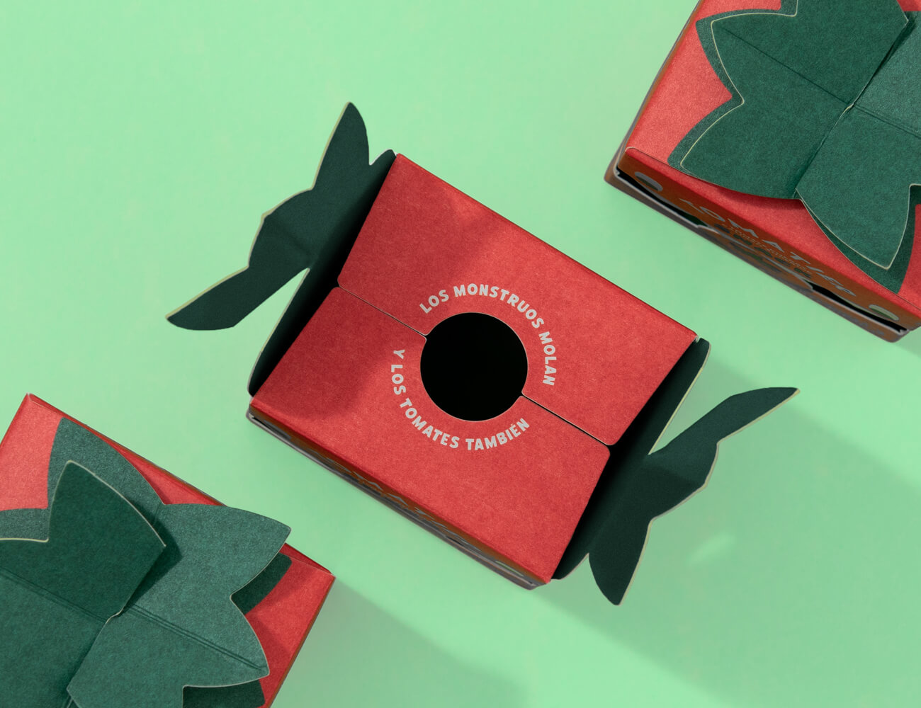 Inspirado en un lindo monstruo al que le encanta devorar tomates, el diseño del empaque agrega un toque divertido. La boca del monstruo, con muecas caprichosas, sirve como ventanas para exhibir los tomates cherry, mientras que su cresta, con forma de tallo de tomate, funciona como un cierre único. El lema “Los monstruos molan y los tomates también” invita a los niños a disfrutar del dulce sabor de los tomates cherry de una forma divertida.