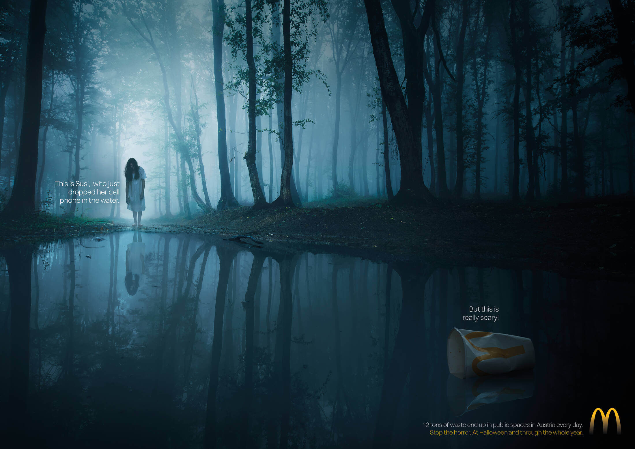 Basándose en conocidas escenas de películas de terror, la franquicia de los arcos dorados muestra de forma sorprendente que el verdadero horror se puede encontrar en otro lugares y está directamente asociado con los desperdicios de basura.