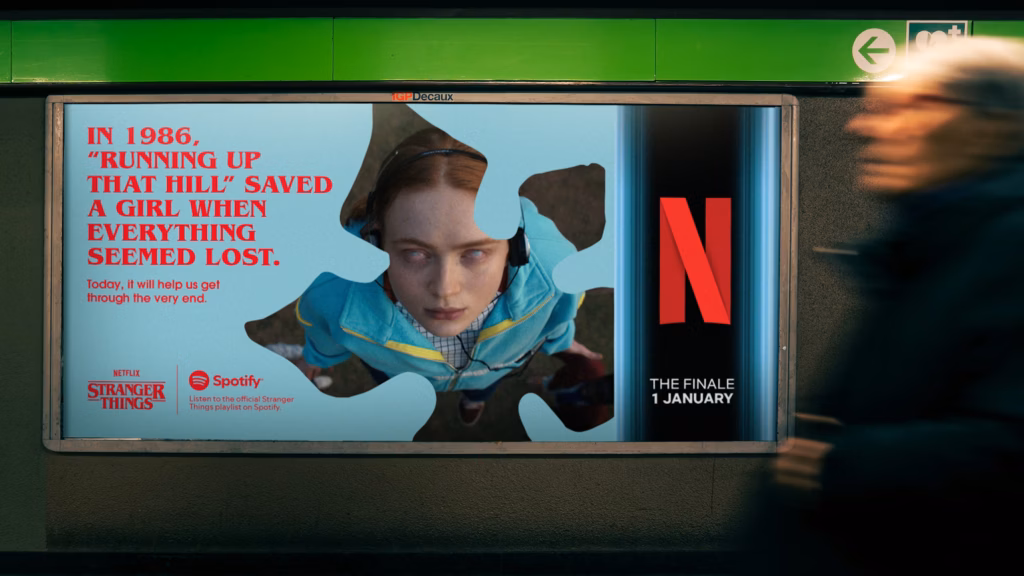 El final de Stranger Things no se anuncia solo con tráilers ni con fechas de estreno. Netflix decidió despedir su serie más emblemática regresando a la música, ese elemento que la transformó en un fenómeno transversal. Para ello, unió fuerzas con Spotify en una campaña que entiende al soundtrack no como acompañamiento, sino como relato emocional en sí mismo.