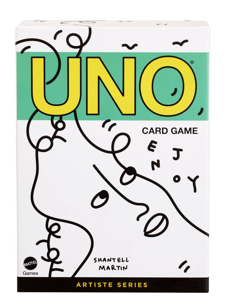 Desde la marca aseguran que en su más reciente entrega de la serie UNO Artiste, Shantell Martin reinventa la baraja UNO, mostrando los icónicos dibujos lineales que encarnan su influencia cada vez mayor como artista contemporánea.