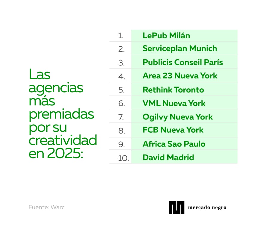 El ranking “Creative 100” de Warc reúne las campañas y empresas más galardonadas en festivales y certámenes a nivel internacional a lo largo del año anterior.
