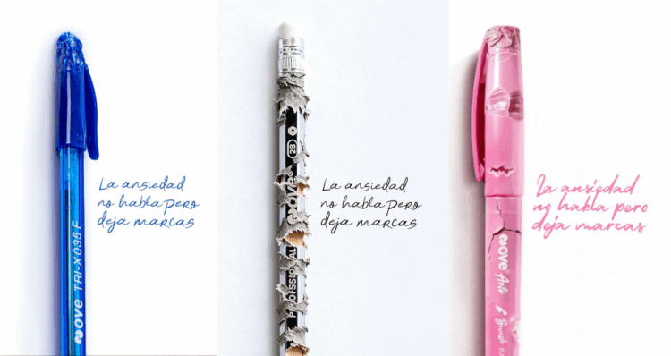 La campaña parte de los pequeños gestos que pasan desapercibidos, pero que pueden revelar mucho sobre lo que sentimos. «En las aulas, en la universidad o incluso en el trabajo, todos hemos visto a alguien que muerde su lápiz o su lapicero de manera habitual. Sin darse cuenta, ese gesto tan pequeño puede ser una señal de ansiedad», explica Luis Llontop, redactor de Fiasco.