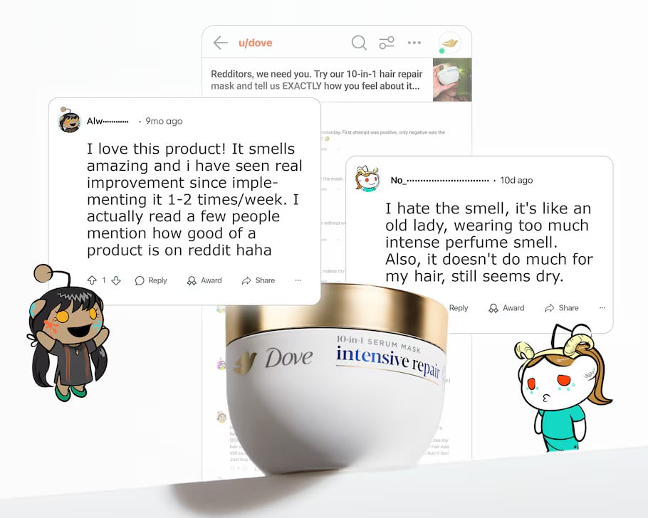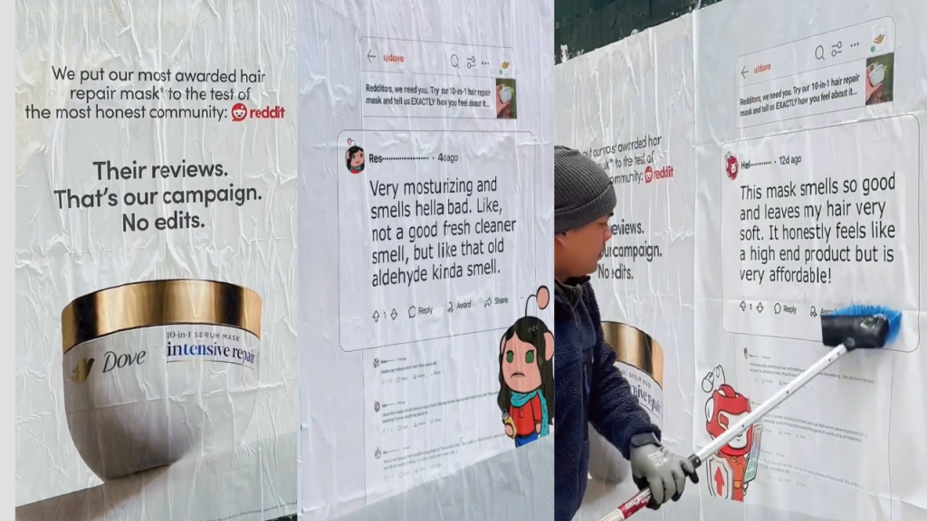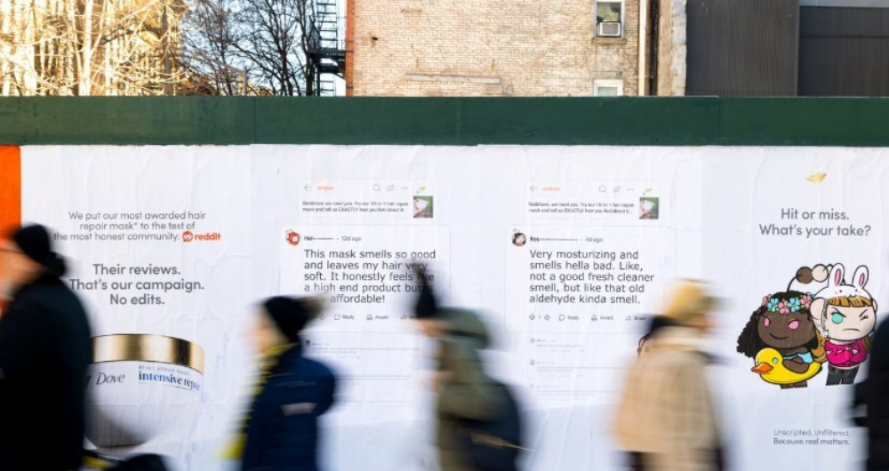 Las marcas de cuidado personal continúan explorando formatos que integran contenido generado por usuarios en sus estrategias de comunicación. En esa línea, Dove presentó una campaña nacional en Estados Unidos que toma como base comentarios publicados en Reddit sobre su mascarilla capilar Intensive Repair, trasladando conversaciones digitales al espacio público.