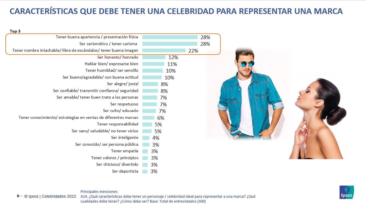 En el competitivo mundo de la publicidad, el uso de famosos como herramienta de marketing es una práctica común en todo el mundo, y el Perú no es una excepción. Es una técnica utilizada para conseguir una mayor conexión con el consumidor; al aparecer una persona conocida, las campañas cuentan con una mayor credibilidad y despiertan más simpatía entre el público. Todos estos factores acaban derivando en un aumento de las ventas y en una mayor fidelidad a la marca. Sin embargo, es importante comprender cómo los usuarios perciben y recuerdan a estas figuras, así como los desafíos y oportunidades asociados con su empleo en la comunicación comercial. En este artículo, exploraremos algunos hallazgos interesantes del estudio realizado por Ipsos sobre el tema de celebridades o personajes públicos en la publicidad de marcas y productos en el Perú.