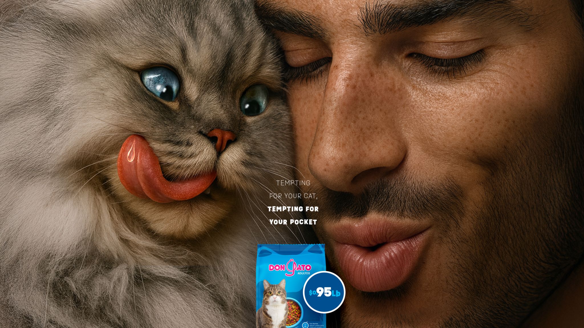 “Don Gato es una marca que tiene una serie de vitaminas y beneficios que tienen los alimentos premium, pero en este caso, el precio es demasiado accesible. Por eso como padre o madre gatuno, darles lo mejor a un gran precio es algo seductor, gusta, es deseable (para el gato como al humano). Por eso el objetivo fue mostrar ese «deseo» para las dos especies humanos (desde la referencia monetaria) y al gato (desde los beneficios y nutrientes)” comentó la agencia a cargo de la propuesta para Mercado Negro.