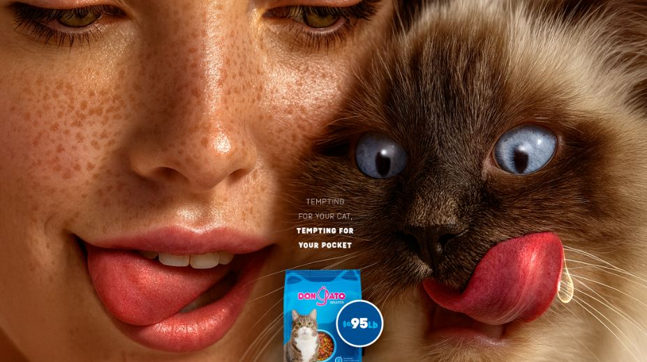 Ideada por la agencia de publicidad Anagram para la marca Don Gato, se trata de una campaña visual en la que se muestran michis viendo de forma provocativa un gran empaque de comida, pero lo más gracioso es que sus amos también se observan del mismo modo.