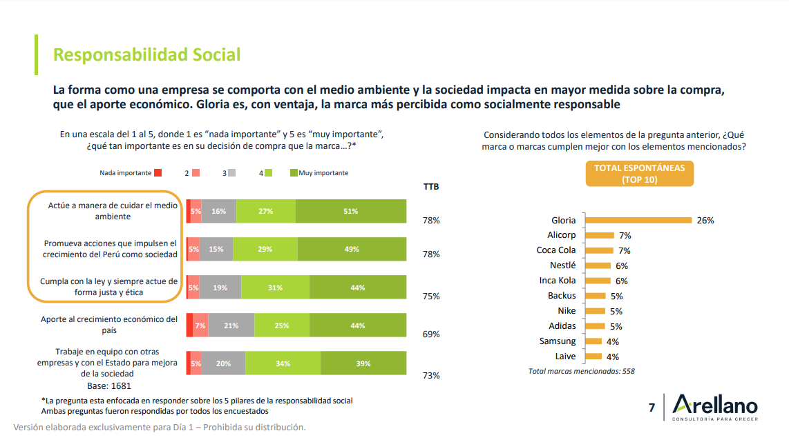 —La interpretación al respecto es que la forma como una empresa se comporta con el medio ambiente y promueve acciones para el crecimiento de la sociedad impactan en la decisión de compra en mayor medida que la variable ligada al crecimiento económico del país para el peruano. Resulta importante conocer esta percepción del consumidor de manera que las marcas tengan un punto de partida para trabajar en los diferentes aspectos que se mueven entorno a este punto. La responsabilidad social empieza a jugar un rol relevante que hay que sumar a nuestra ecuación, muchas empresas ya lo están haciendo pero aún hay trabajo por desarrollar.