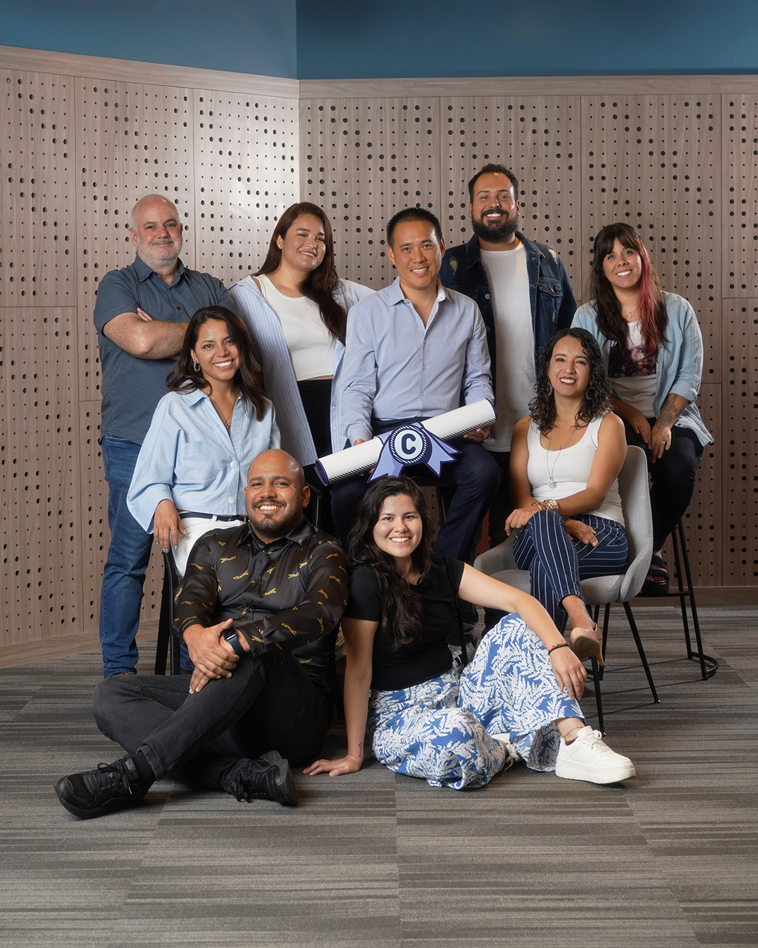 De izquierda a derecha y de arriba para abajo. Rodolfo Cremer – Director Académico General CERTUS Nanci Fuentes – Coordinadora de Diseño y Producción CERTUS Leonardo Gómez Gómez Director Creativo Humans Katia Bravo – Product Owner CERTUS Gustavo Lisung – Gerente General CERTUS Stephany C. Chill – Coordinadora de Marca y Campaña CERTUS Sebastián Gonzalez – Director de Estrategia Humans Patricia Montoya – Directora de Cuentas Humans Pierina Montenegro – Gerente de Ventas CERTUS.
