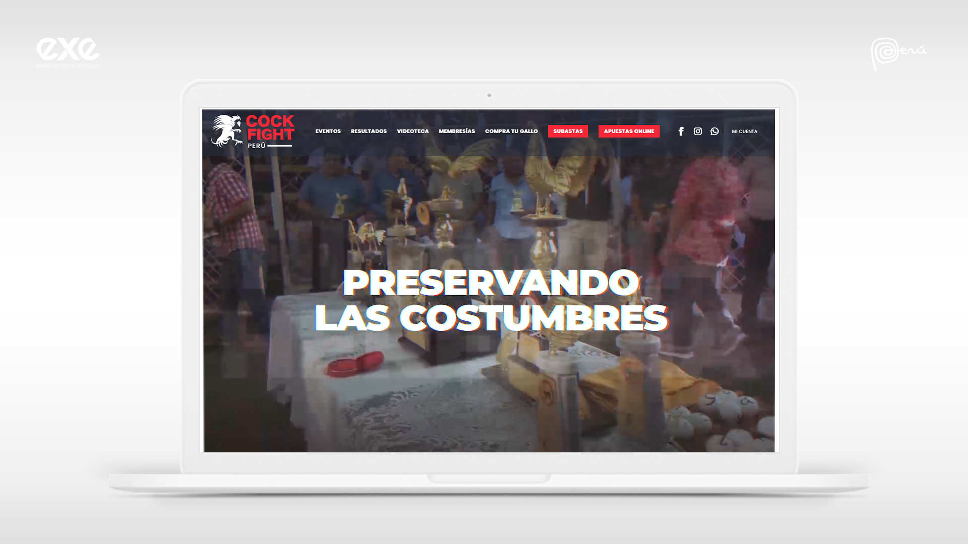 Para el diseño de la web, la agencia EXE desarrolló una plataforma que hace streaming de las peleas de gallos en vivo, considerado un espectáculo de carácter cultural en el Perú, transmitiendo la esencia de la cultura y la marca, llevando a su vez una tradición de más de 500 años a un formato cargado de innovación. Para ello manejaron una línea gráfica potente y visualmente atractiva y a su vez, la web se creó con características responsive, una adecuada experiencia de usuario, diseño dinámico y de fácil acceso, que permite comprar en línea diferentes tipos de membresías conectadas a pasarelas de pago.