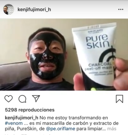 Junto a este peculiar video promocionando dicho producto, el congresista escribió: “No me estoy transformando en #venom… es una mascarilla de carbón y extracto de piña, PureSkin de @pe.oriflame para limpiar poros y espinillas. Y está súper buenísima y relajante”.